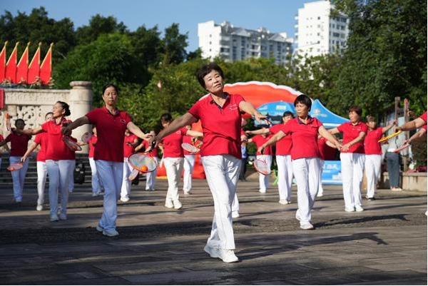 8月8日,值此第17个“全民健身日”之际,武平县老年人体育协会联合县妇幼保健院,在梁野文化广场举办“妇幼健康杯”柔力球展示活动。88名柔力球爱好者齐聚一堂,共同展示健身成果。