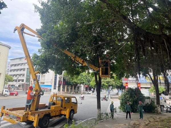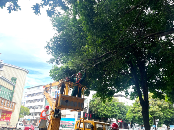 为迎战台风“桦加沙”,有效防范台风可能引发的树木倒伏、断枝等带来的安全隐患,武平县园林所组织专业队伍,在全县范围内开展行道树及公园树木修剪专项行动,全力保障市民出行安全和城市公共设施完好。