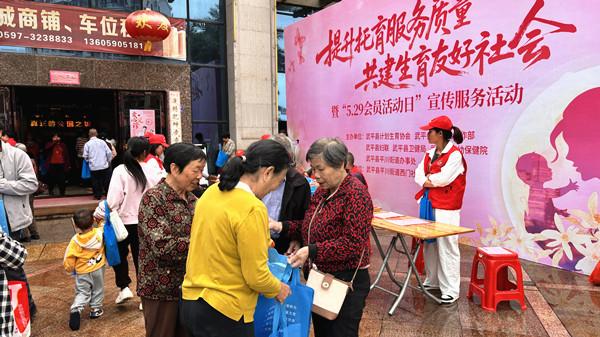 5月26日,武平县计生协会联合县社工部、妇联、卫健局、妇幼保健院等部门,围绕“提升托育服务质量 共建生育友好社会”主题,开展“5.29会员活动日”志愿服务系列活动,通过政策宣传、健康服务、亲子互动等形式,倡导新型婚育文化,营造生育友好社会氛围。